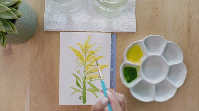 Experiment with brush mark making and create this wildflower by adjusting the pressure with your brush while making marks for the petals of the flower. Enjoy!