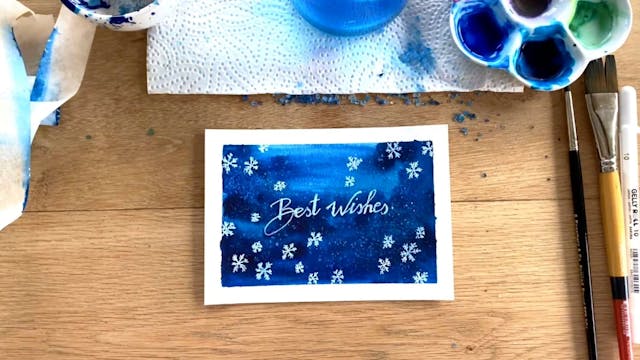 In this tutorial you will learn how to create a special effect background wash with salt and snowflakes with white gouache or a white gel pen.