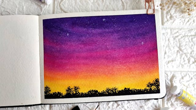 In this tutorial, you will learn how to paint a dusk sky, with blends of different colors, without turning colors muddy.